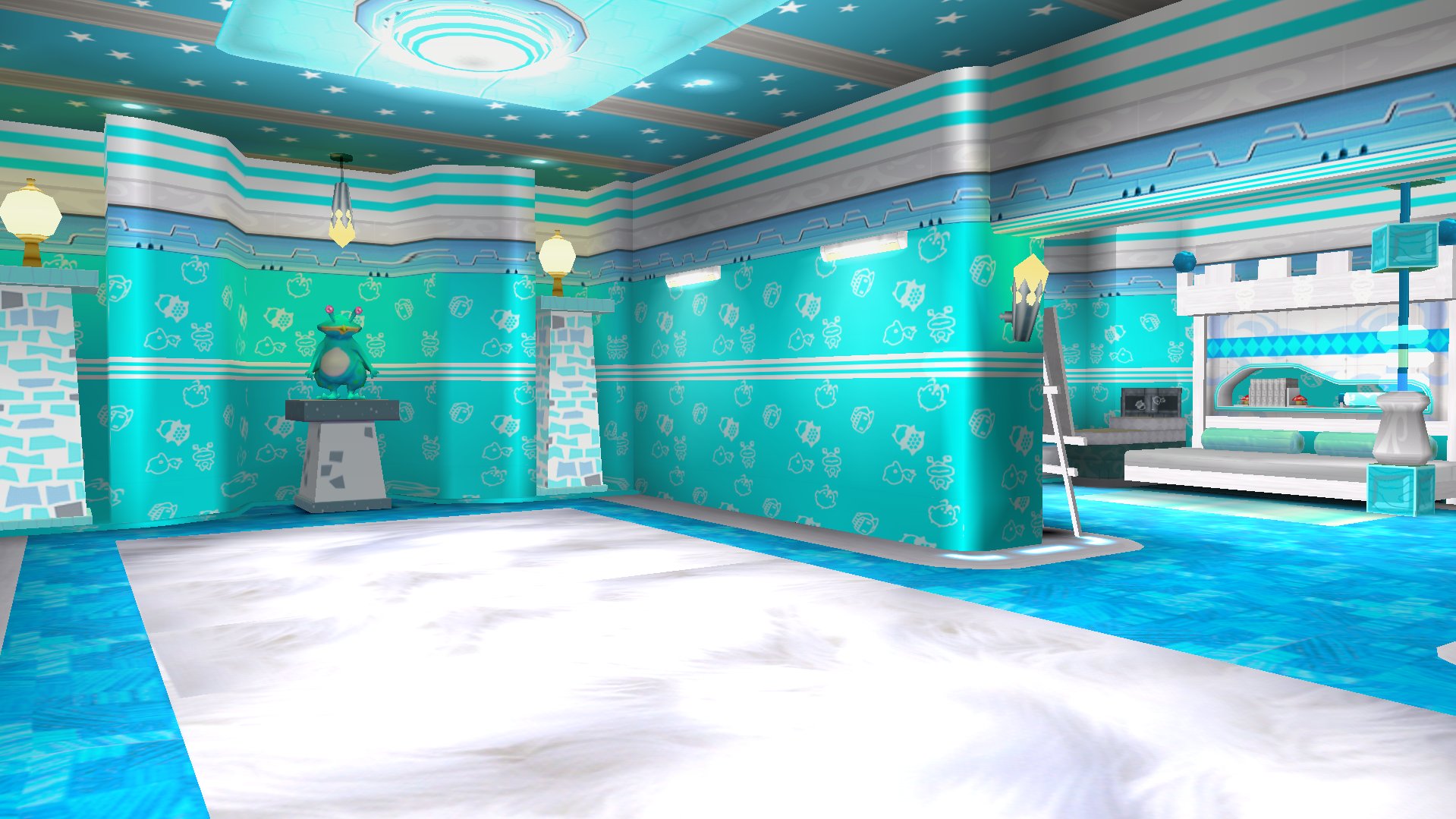 - 19:03, 19 May 2024 Break talk contribs created page Skin:Kakwane Cyan Room (Created page with "{{Skin | name = Kakwane Cyan Room | image = cyankak 1.png | author = Egg | type = Room skin }} '''Kakwane Cyan Room''' is a skin that modifies the Kakwane Room to one with a cyan theme. ==Preview images== <gallery mode="nolines" widths=256px heights=144px> File:cyankak 1.png|Kakwane Cyan Room Main Area File:cyankak 2.png|Kakwane Cyan Room Shop Area File:cyankak 3.png|Kakwane Cyan Room Bed Area File:cyankak 4.png|Kakwane Cyan Room Shop Counter </gallery> ==Download=...")